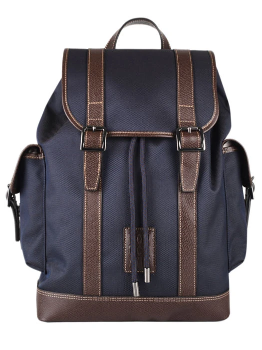 An iconic line from Longchamp, Boxford embodies understated elegance. Sober and distinctive, these bags are crafted in a two-tone canvas with Russian leather trim for a rich embossed effect. This men’s backpack takes on the adventurous spirit of the hiking backpack. Its two exterior pockets offer quick access to personal belongings.