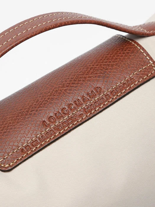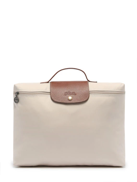 Close this Longchamp Le Pliage briefcase with a zip and a snap flap.