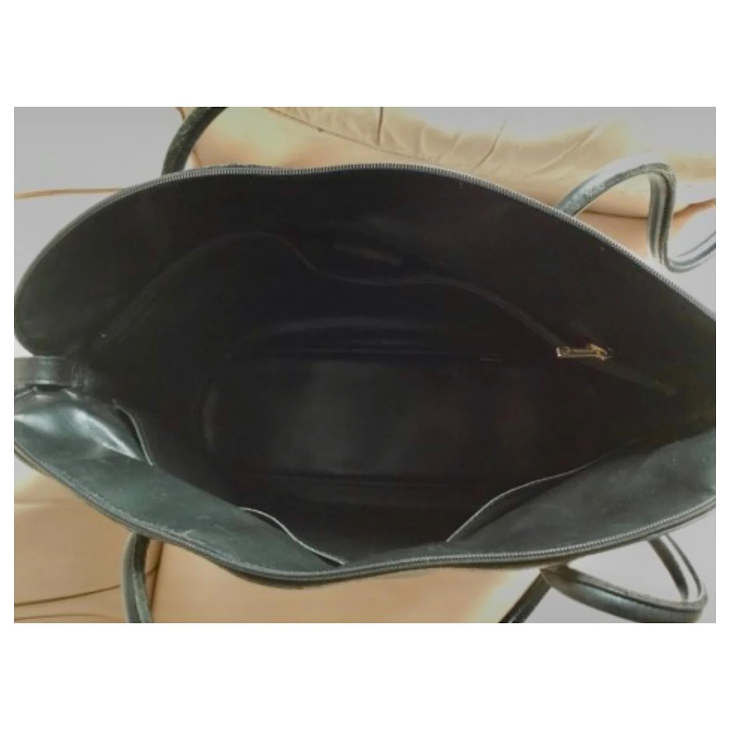 IL FERME SUR LE DESSUS PAR UNE FERMETURE ÉCLAIR FINISSANT PAR UN JOLI MÉDAILLON LONGCHAMP ET À L’INTÉRIEUR SE TROUVE L’ÉTIQUETTE D’AUTHENTICITÉ ET UNE SANGLE DE CUIR AVEC UN MOUSQUETON AU BOUT.