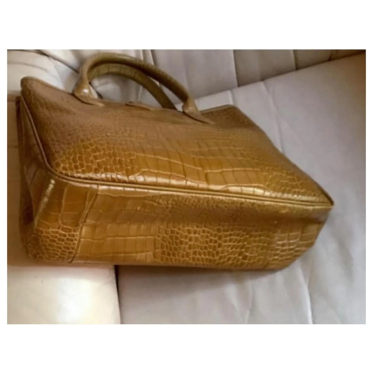 MAGNIFIQUE SAC PORTÉ MAIN EN CUIR DE VEAU FRAPPÉ FAÇON CROCO LIGNE ROSEAU ARGENT DE CHEZ LONGCHAMP.