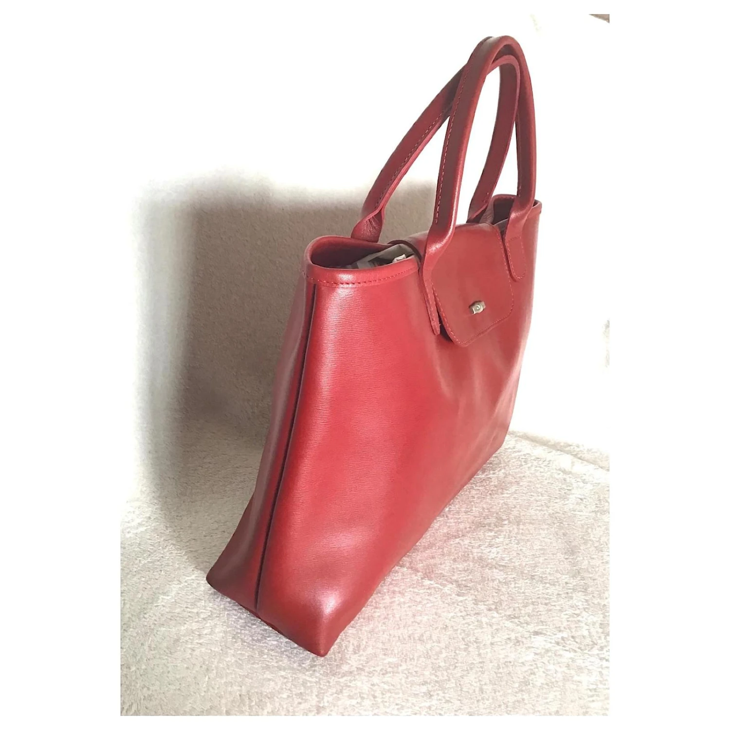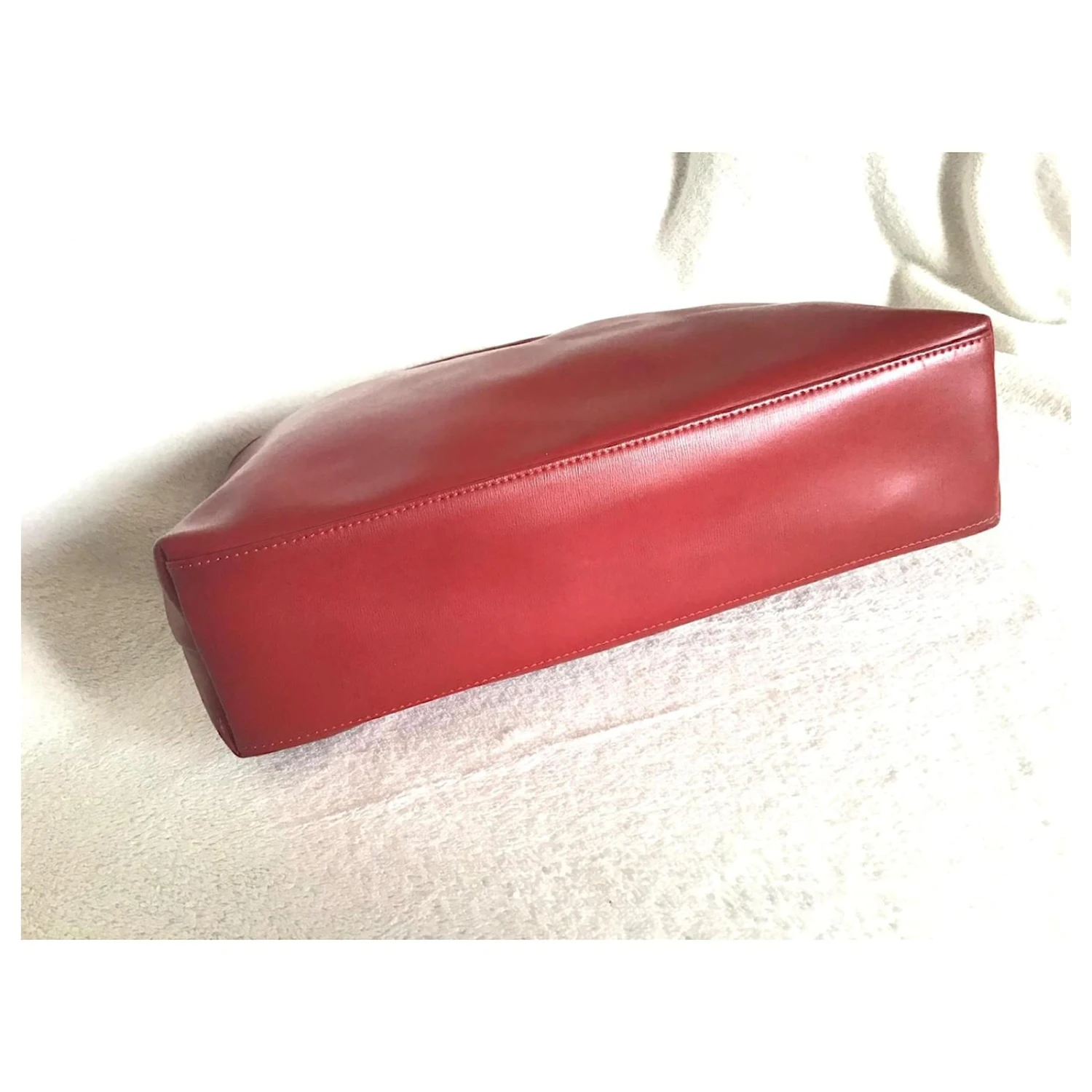 Sac Longchamp modèle roseau en cuir rouge en très bon état.