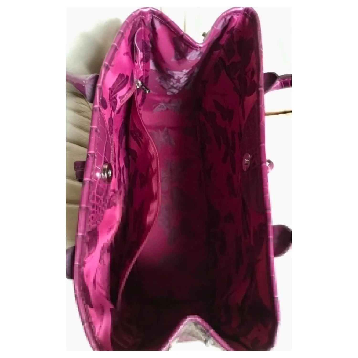 MAGNIFIQUE SAC VIOLINE EN CUIR DE VEAU FRAPPÉ FAÇON CROCO LIGNE ROSEAU DE CHEZ LONGCHAMP.