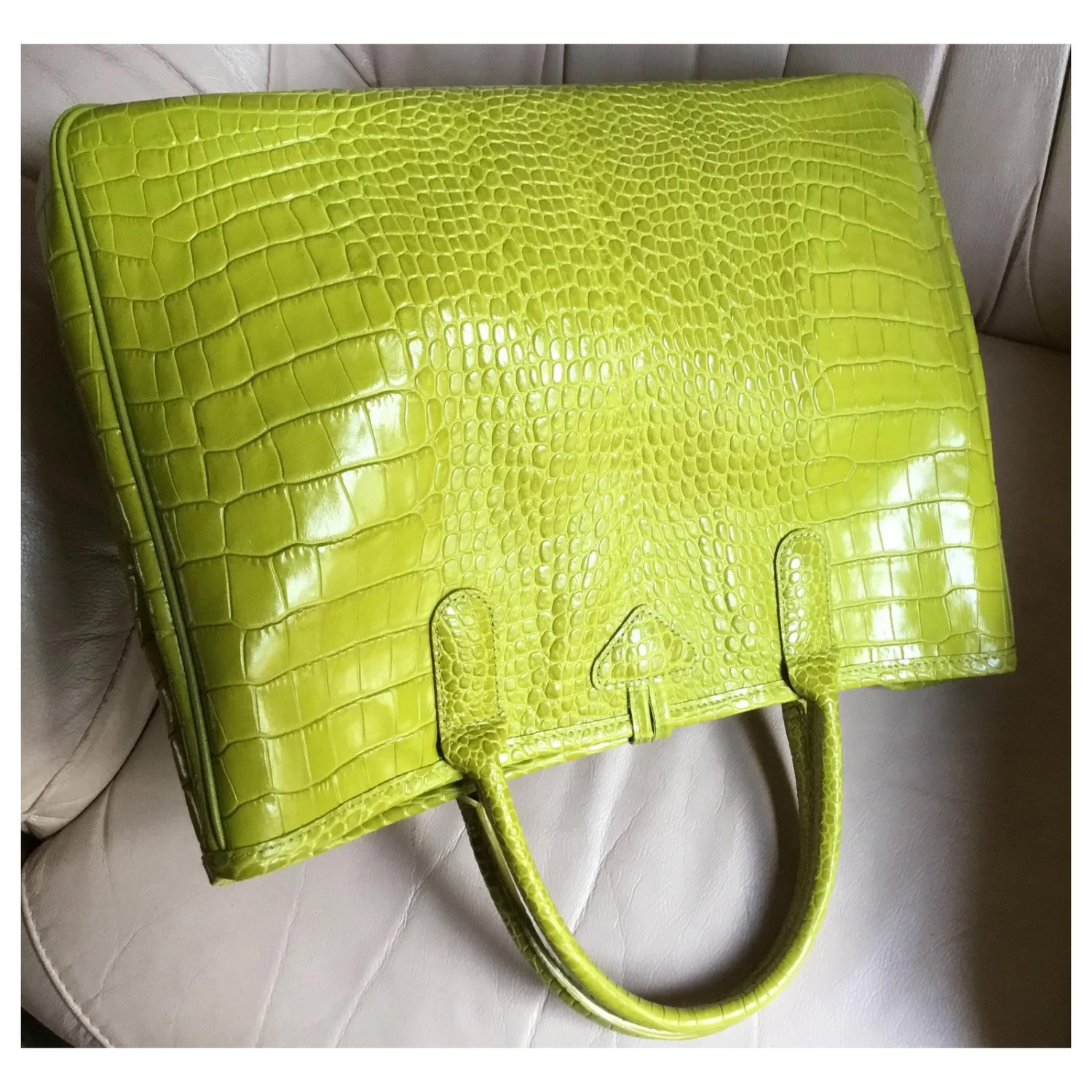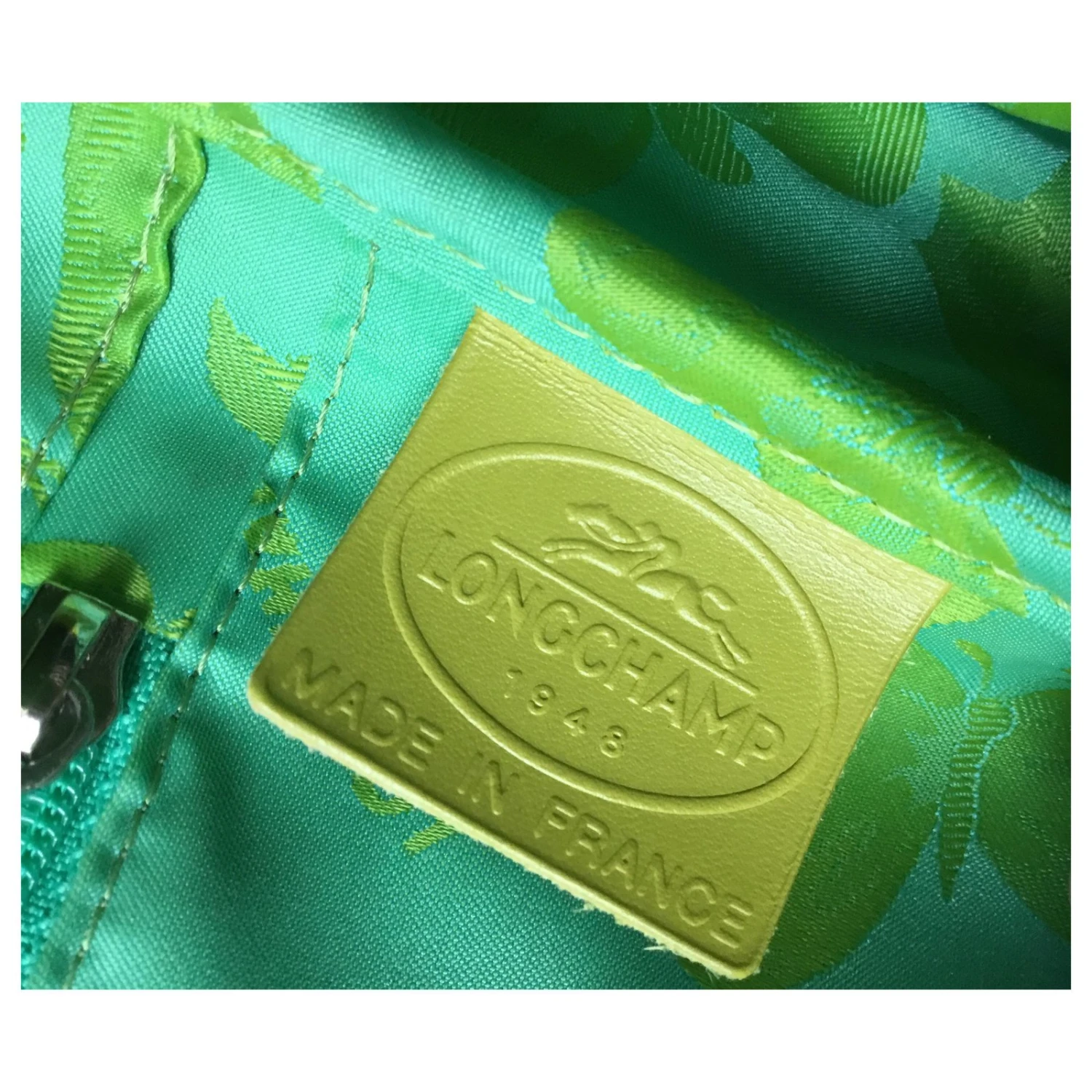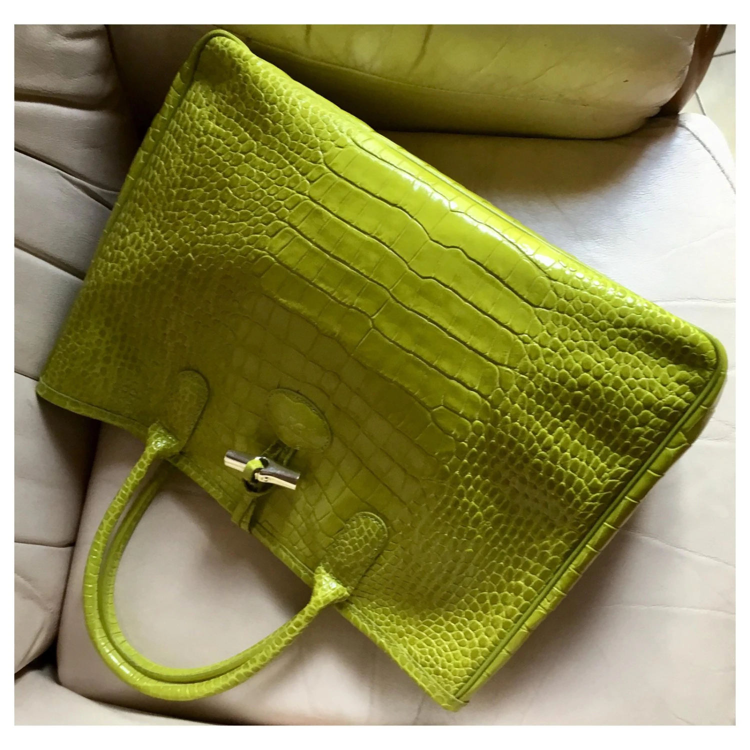 SUPERBE SAC ANIS EN CUIR DE VEAU FRAPPÉ CROCO DE CHEZ LONGCHAMP LIGNE ROSEAU.