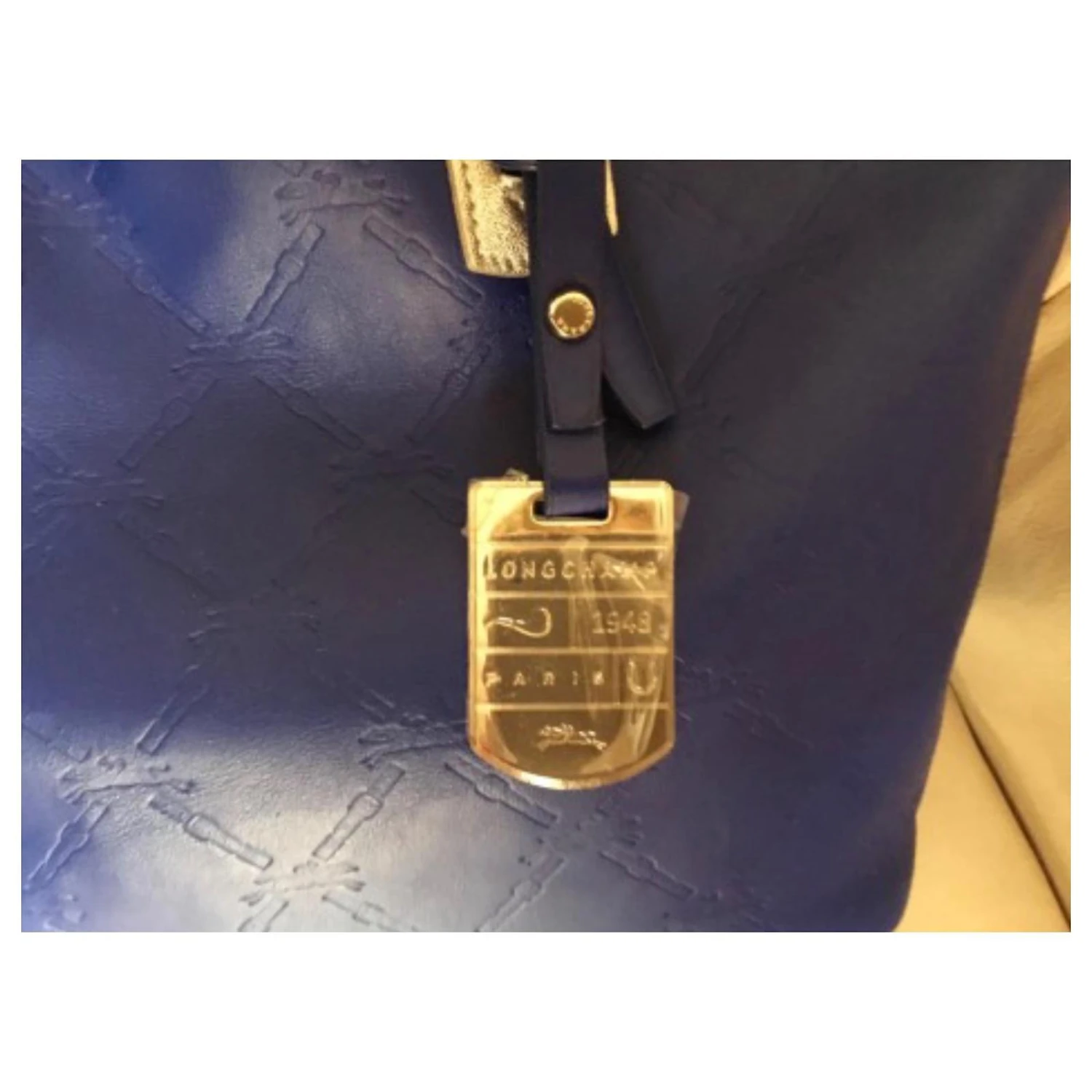 MAGNIFIQUE SAC EN CUIR DE VEAU BLEU DUR, TRÈS SOUPLE FRAPPÉ DU MONOGRAMME LONGCHAMP ET BORDÉ DE CUIR ARGENTÉ.