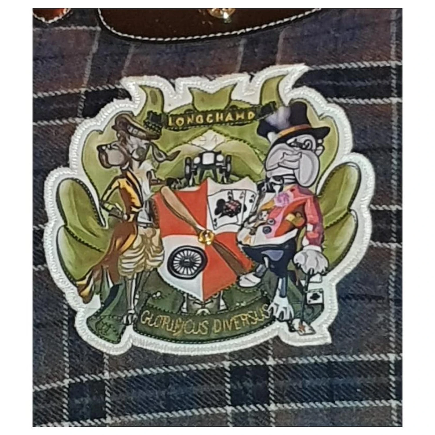 sac rare longchamp en tissu à carreaux ,