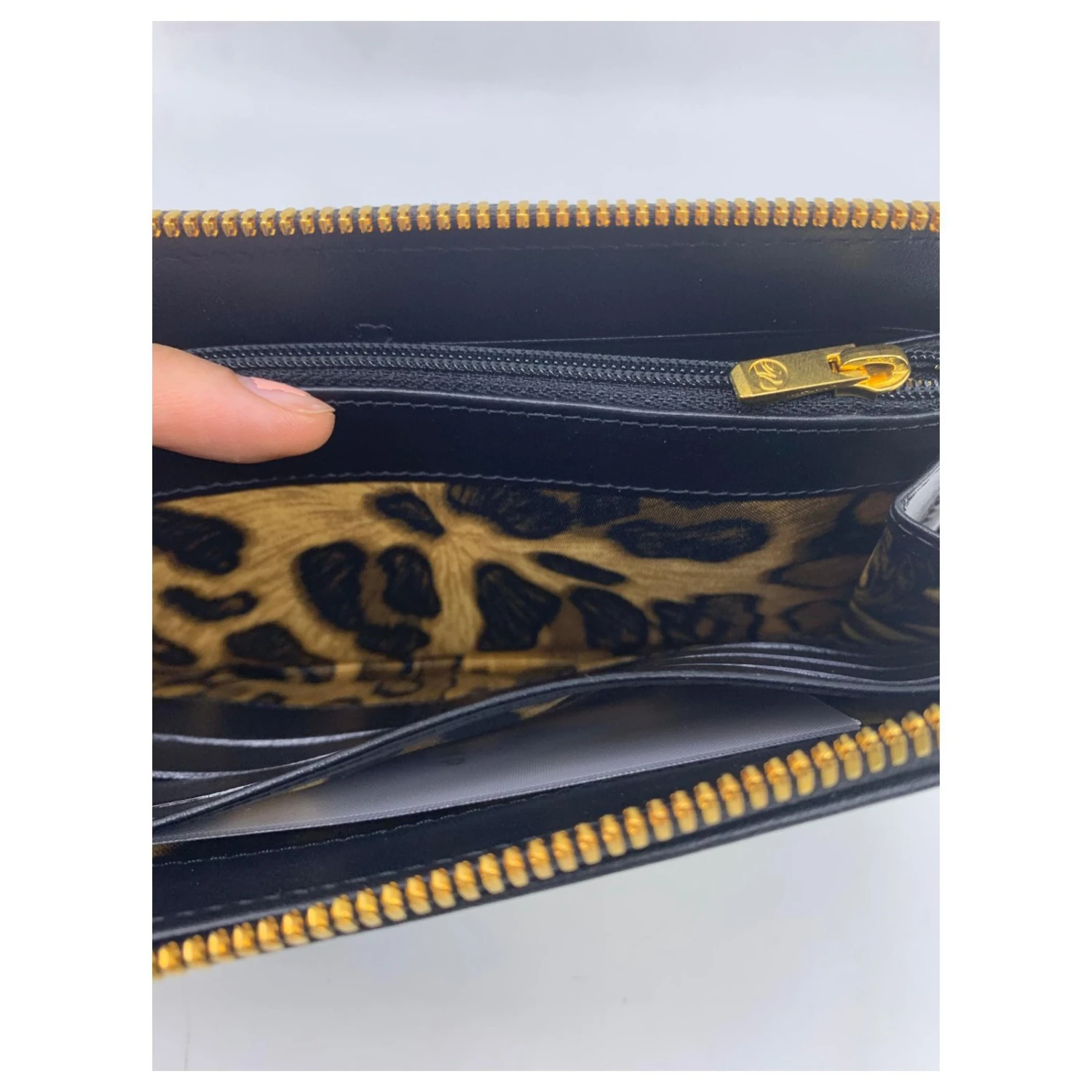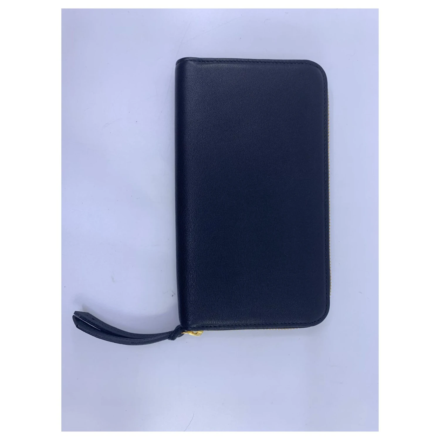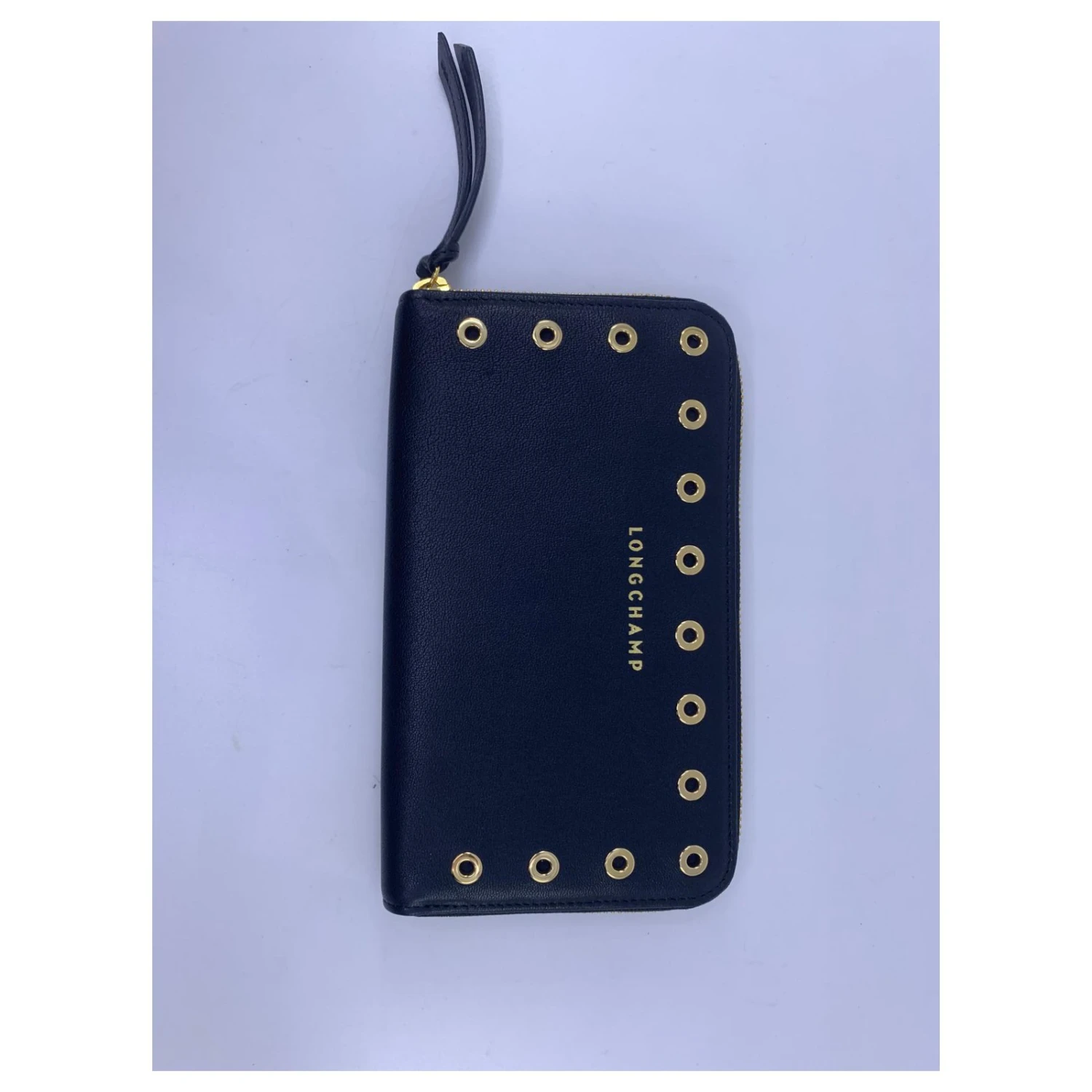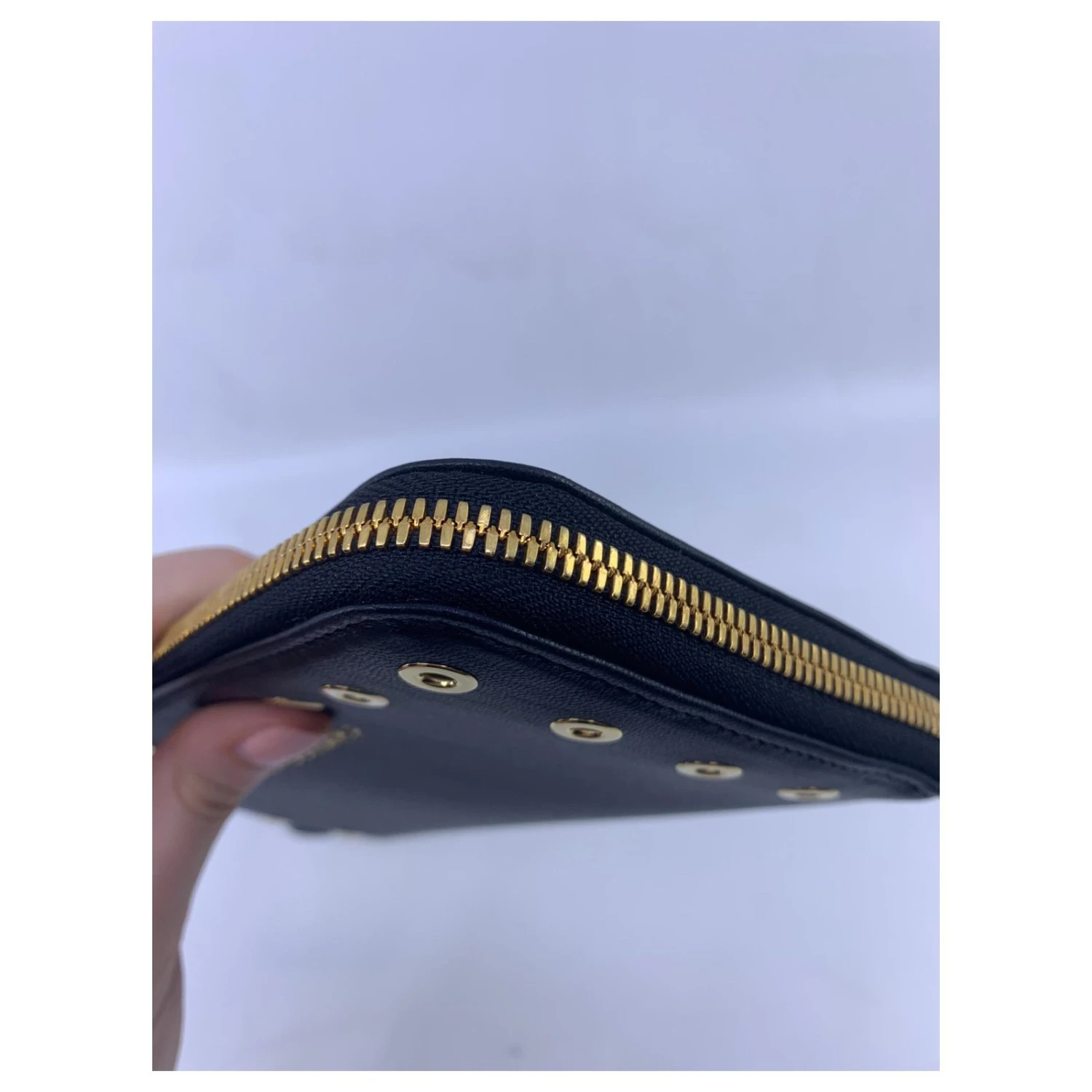 Portefeuille en parfait état noir avec œillets dorés tout autour.