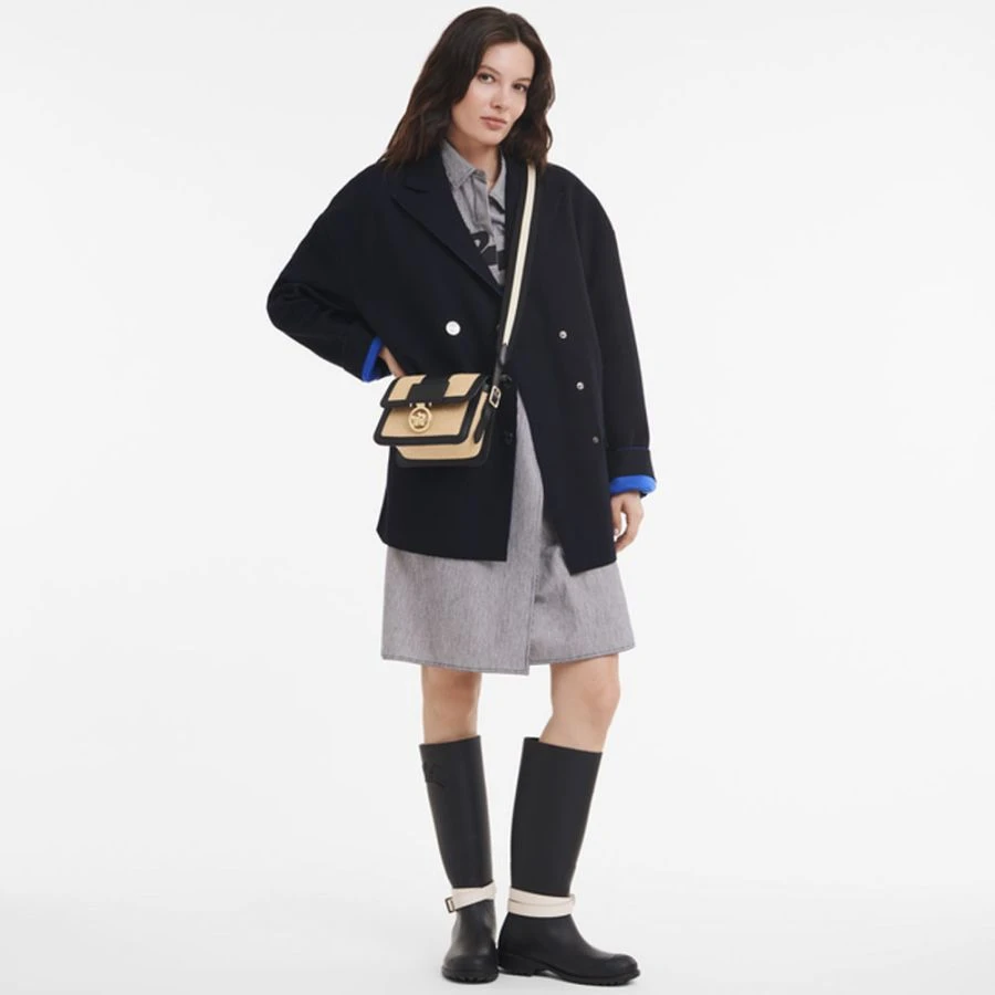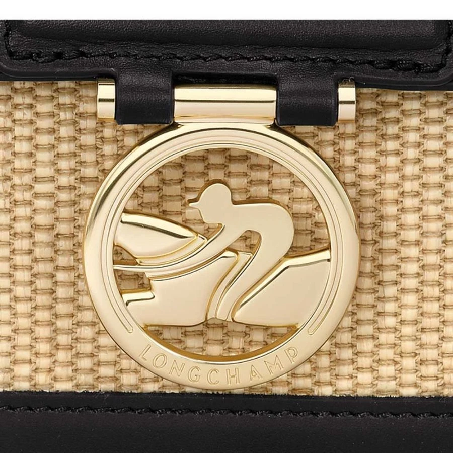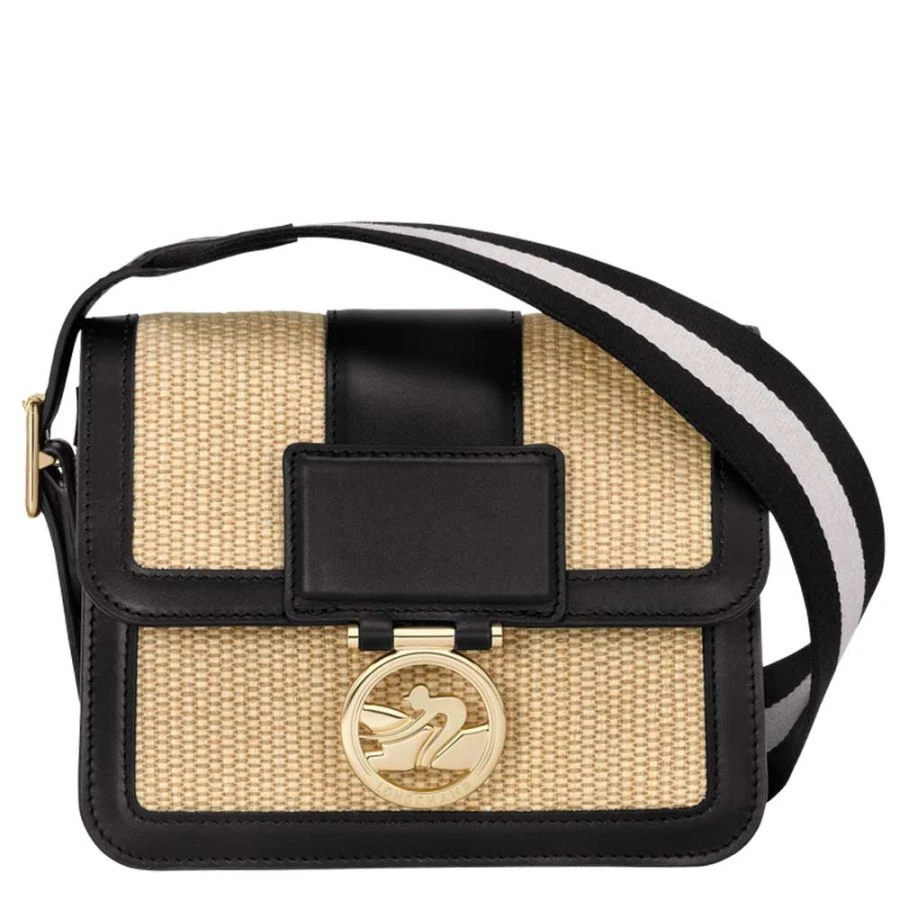 Sac bandoulière (S) Longchamp Box-Trot en toile effet paille garni de cuir.