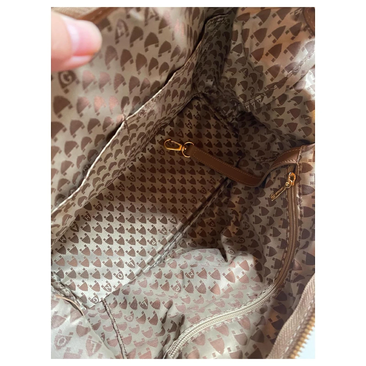 100 % cuir lisse et souple couleur marron clair avec liserés couleur or donnant un côté très chic.
