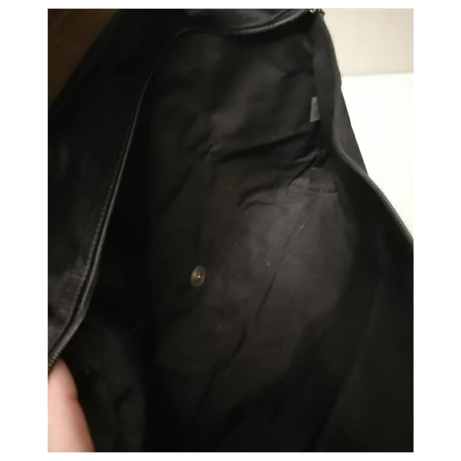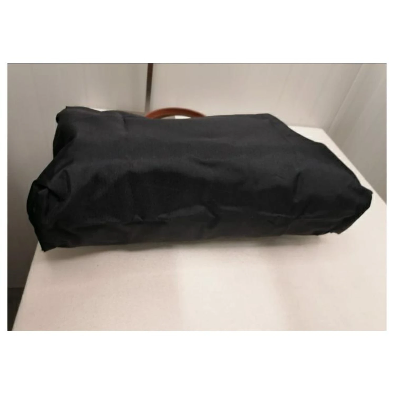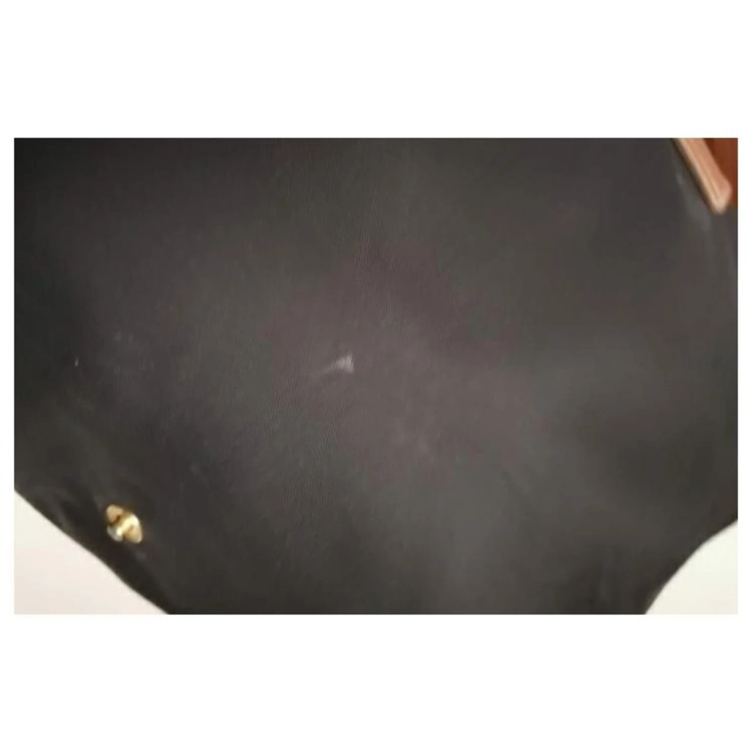 Porte-documents de style porte-documents pour sac à main Longchamp 24 heures en toile de voile noire et cuir, empiècements et poignée en cuir marron beige avec fermeture zippée et bouton logo voir photo