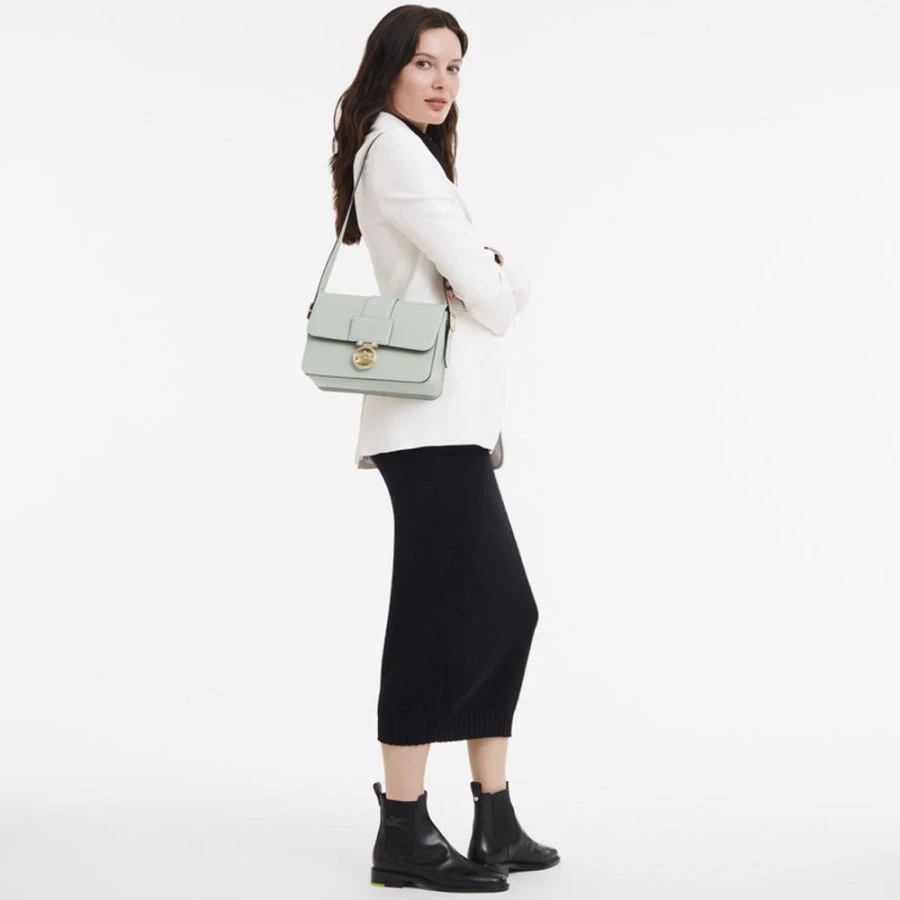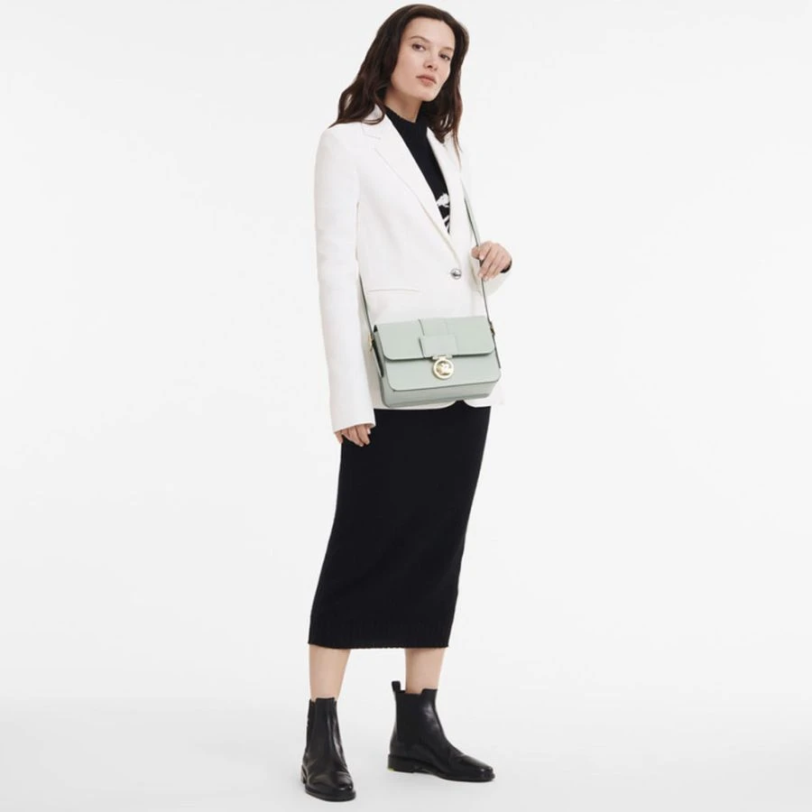 Besace (M) Longchamp Box-Trot confectionnée en cuir de veau légèrement patiné.